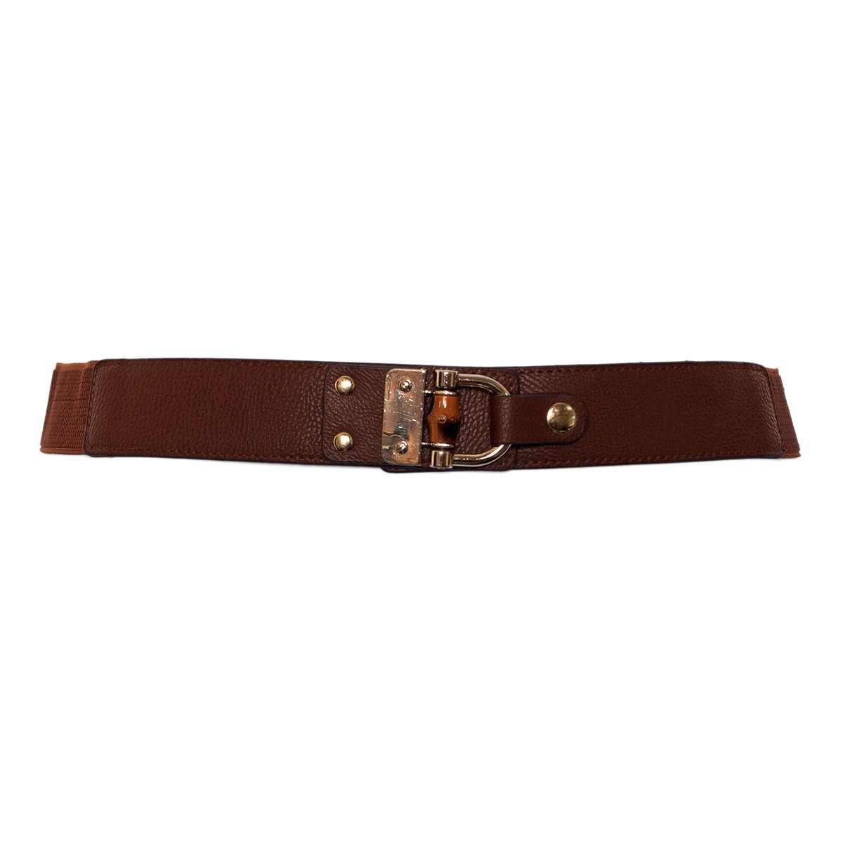 Plus Size Golden Metal Buckle Skinny Elastic Belt Brown