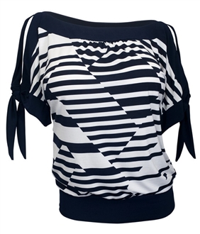 Plus size Off Shoulder Stripe Print Top Navy